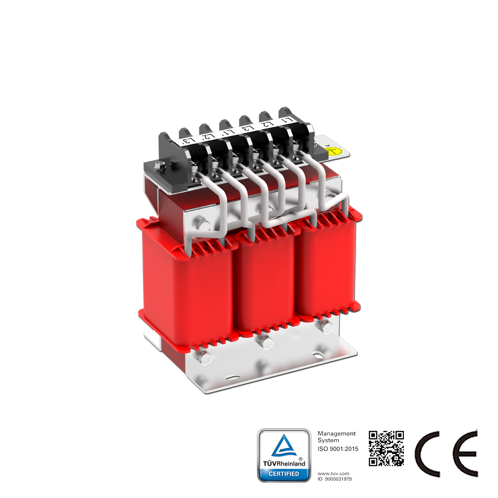 SKS-ACLシリーズのラインリアクトルは、電気機器と直列に接続され、交流回路に特定の制御されたインピーダンスを導入します。本シリーズは、ACドライブ入力側に適用され、突入電圧の抑制、突入電流およびピーク電流の低減、有効力率の改善、グリッド高調波の抑制、出力電流波形の改善を図ります。ACラインリアクトルは、入力リアクトル、ACチョークとも呼ばれます。