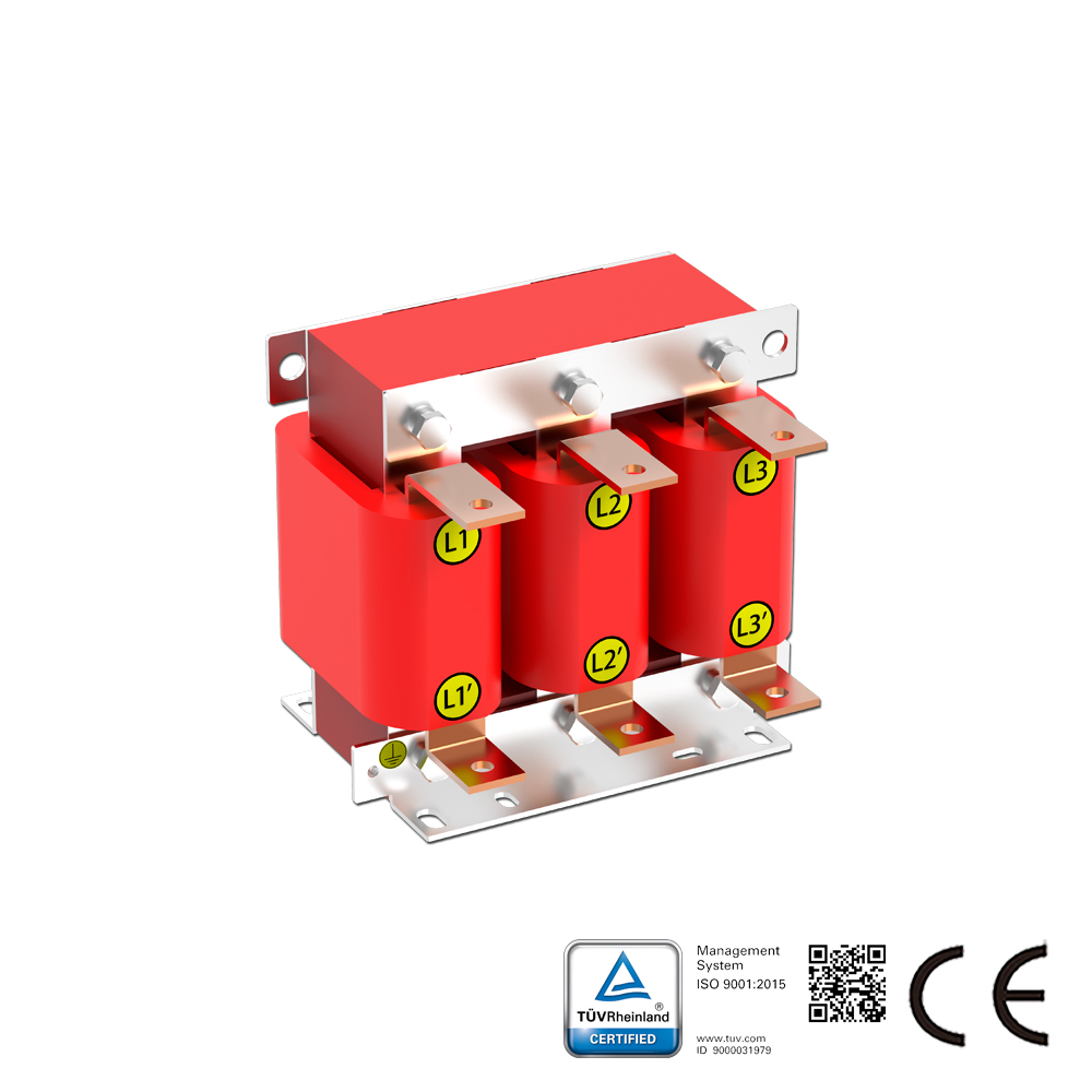 SKS-ACLシリーズのラインリアクトルは、電気機器と直列に接続され、交流回路に特定の制御されたインピーダンスを導入します。本シリーズは、ACドライブ入力側に適用され、突入電圧の抑制、突入電流およびピーク電流の低減、有効力率の改善、グリッド高調波の抑制、出力電流波形の改善を図ります。ACラインリアクトルは、入力リアクトル、ACチョークとも呼ばれます。