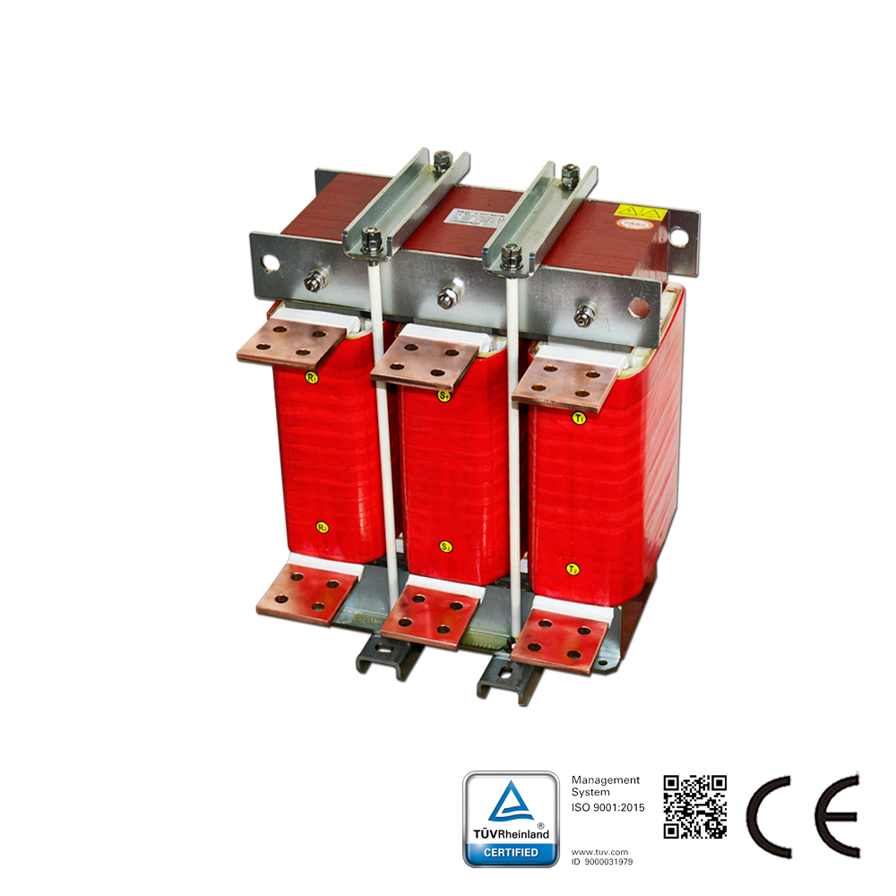 SKS-ACLシリーズのラインリアクトルは、電気機器と直列に接続され、交流回路に特定の制御されたインピーダンスを導入します。本シリーズは、ACドライブ入力側に適用され、突入電圧の抑制、突入電流およびピーク電流の低減、有効力率の改善、グリッド高調波の抑制、出力電流波形の改善を図ります。ACラインリアクトルは、入力リアクトル、ACチョークとも呼ばれます。