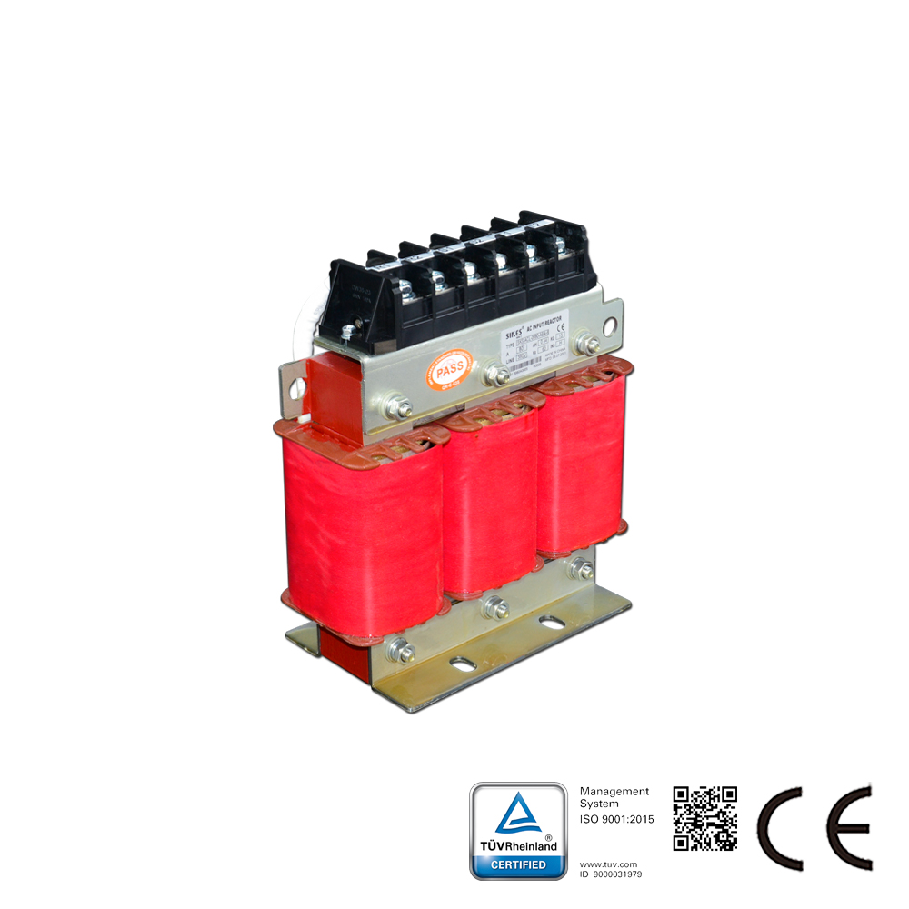 SKS-ACLシリーズのラインリアクトルは、電気機器と直列に接続され、交流回路に特定の制御されたインピーダンスを導入します。本シリーズは、ACドライブ入力側に適用され、突入電圧の抑制、突入電流およびピーク電流の低減、有効力率の改善、グリッド高調波の抑制、出力電流波形の改善を図ります。ACラインリアクトルは、入力リアクトル、ACチョークとも呼ばれます。