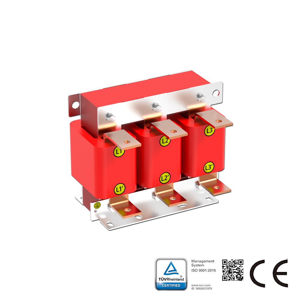 SKS-ACLシリーズのラインリアクトルは、電気機器と直列に接続され、交流回路に特定の制御されたインピーダンスを導入します。本シリーズは、ACドライブ入力側に適用され、突入電圧の抑制、突入電流およびピーク電流の低減、有効力率の改善、グリッド高調波の抑制、出力電流波形の改善を図ります。ACラインリアクトルは、入力リアクトル、ACチョークとも呼ばれます。