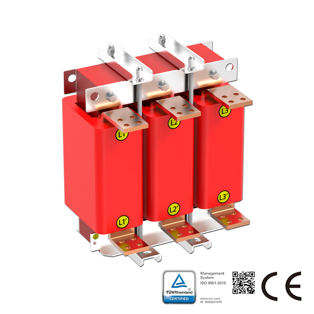 SKS-OCLシリーズ負荷リアクトルは、電気設備と直列に接続され、交流回路に特定の制御されたインピーダンスを導入します。本シリーズは、AC駆動装置の出力側に適用され、突入電圧を抑制し、突入電流およびピーク電流を低減し、有効力率を改善し、系統高調波を抑制し、出力電流波形を改善します。ラインリアクトルは、出力リアクトルとも呼ばれます。