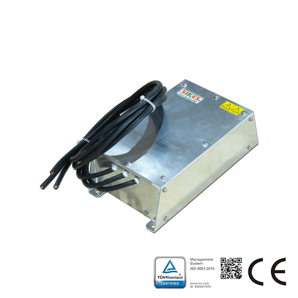 Sine wave plus EMC filter  Description : This is a Sine Wave and EMC Output Filter for Motor Drives with a DC Link Access. It will eliminate the disturbance between phase and ground. Normal sine wave filter only works between phases. With improved sine wave filter you can use unshielded motor cables with good EMC performance. You can use old motor cables and still keep in EMC category C2. The best choice for energy saving for existing motors.